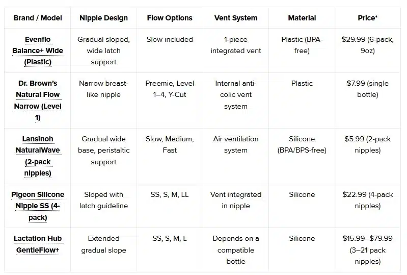 Small details like nipple shape, flow speed, and latch depth can influence how easily a baby moves between breast and bottle. Choosing the best bottles for breastfed babies means looking past marketing and focusing on designs that work with your baby’s natural feeding rhythm.