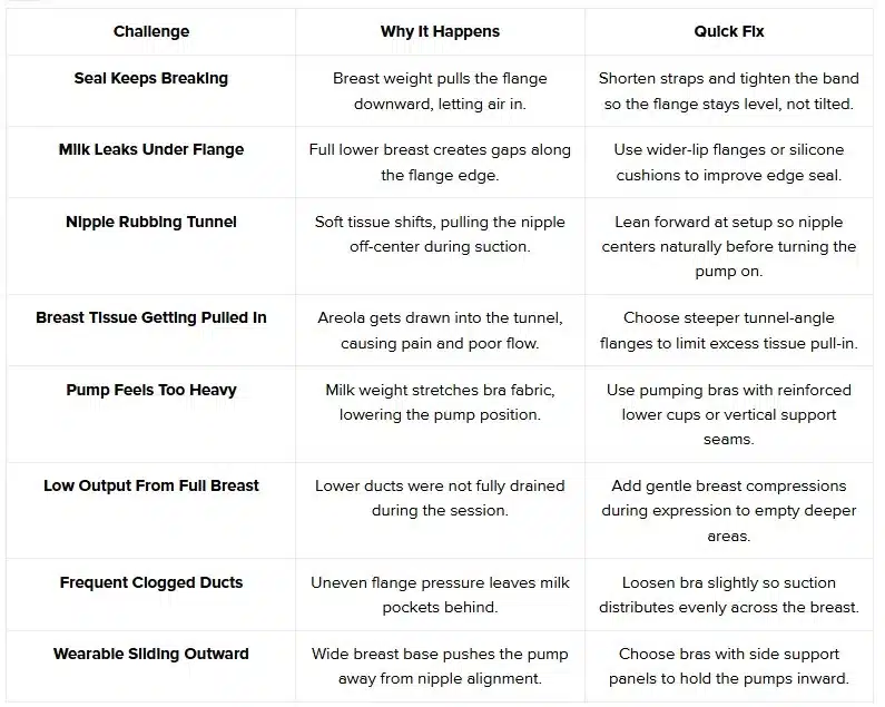 If you have a fuller bust, pumping issues are usually mechanical, not personal. Small fit and positioning changes can dramatically improve comfort and milk output.