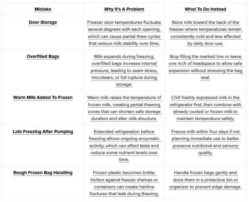 Freezing breast milk seems simple, but small missteps can affect safety, nutrient quality, and how easily milk is used later. These are the most common technical errors.